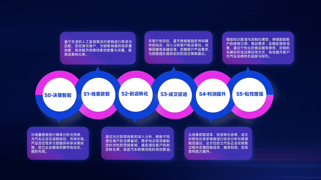 通过拓宽潜在客户来源、、、优化线索分配并提高到店转化率,,,以增强销售效率。。。同时,,利用线索数据不断优化分析模型,,有效提升转化率,,扩大营销影响力。。